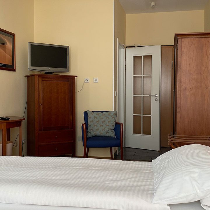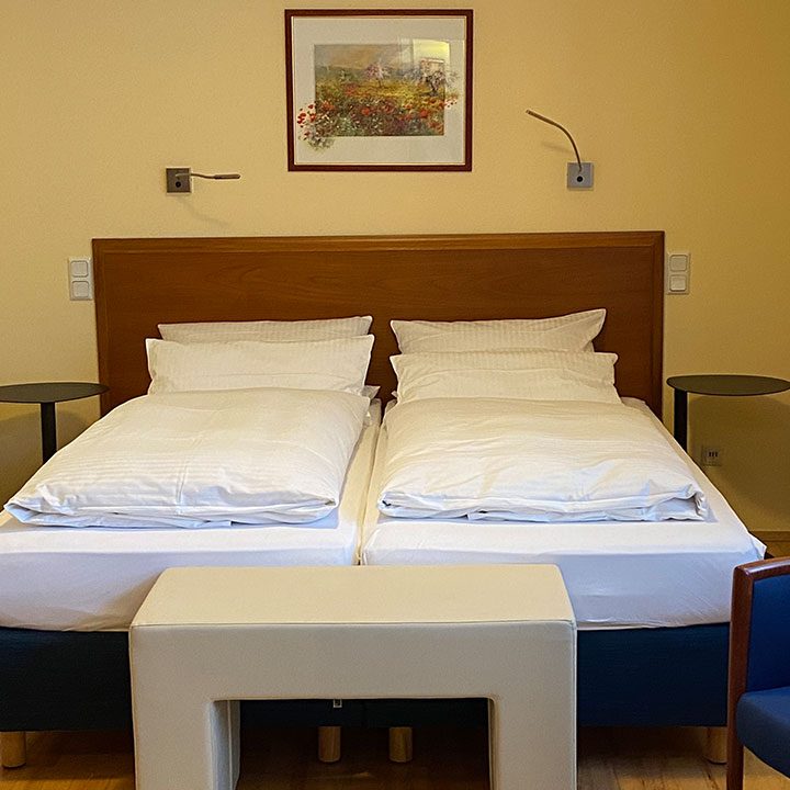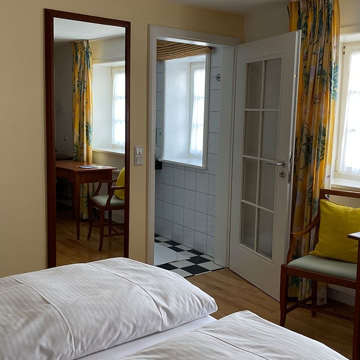 Unser Hotel verfügt über 5 Doppel- und 4 Einzelzimmer. Jedes Gästezimmer ist mit Dusche oder Bad/WC, Föhn, kostenfreies WLAN, TV, Minibar ausgestattet. Allen Zimmern gemeinsam ist die ruhige Lage. Ruhe und Entspannung finden Sie auch in unserer hauseigenen Sauna. Kostenlose Parkplätze für unsere Gäste befinden sich direkt am Hotel. In den Zimmerpreisen ist unser reichhaltiges Frühstücksbuffet enthalten.